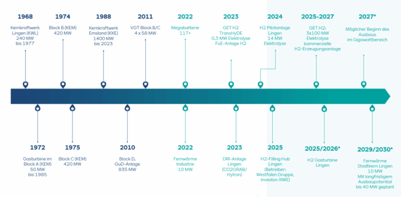Nach der Stilllegung der Atomkraftwerke, ergeben sich aufgrund der bereits vorhandenen Infrastruktur (Gasnetz, Stromnetz und hinreichende Verfügbarkeit von Wasser, welches früher für die Kühlung des Atomkraftwerkes benötigt wurde) neue Perspektiven durch die Produktion von Wasserstoff. In Verbindung mit den zugehörigen Verteilnetzen zum Wasserstofftransport und den Speichermöglichkeiten werden wesentliche Bausteine zur Unterstützung der Energiewende geschaffen.